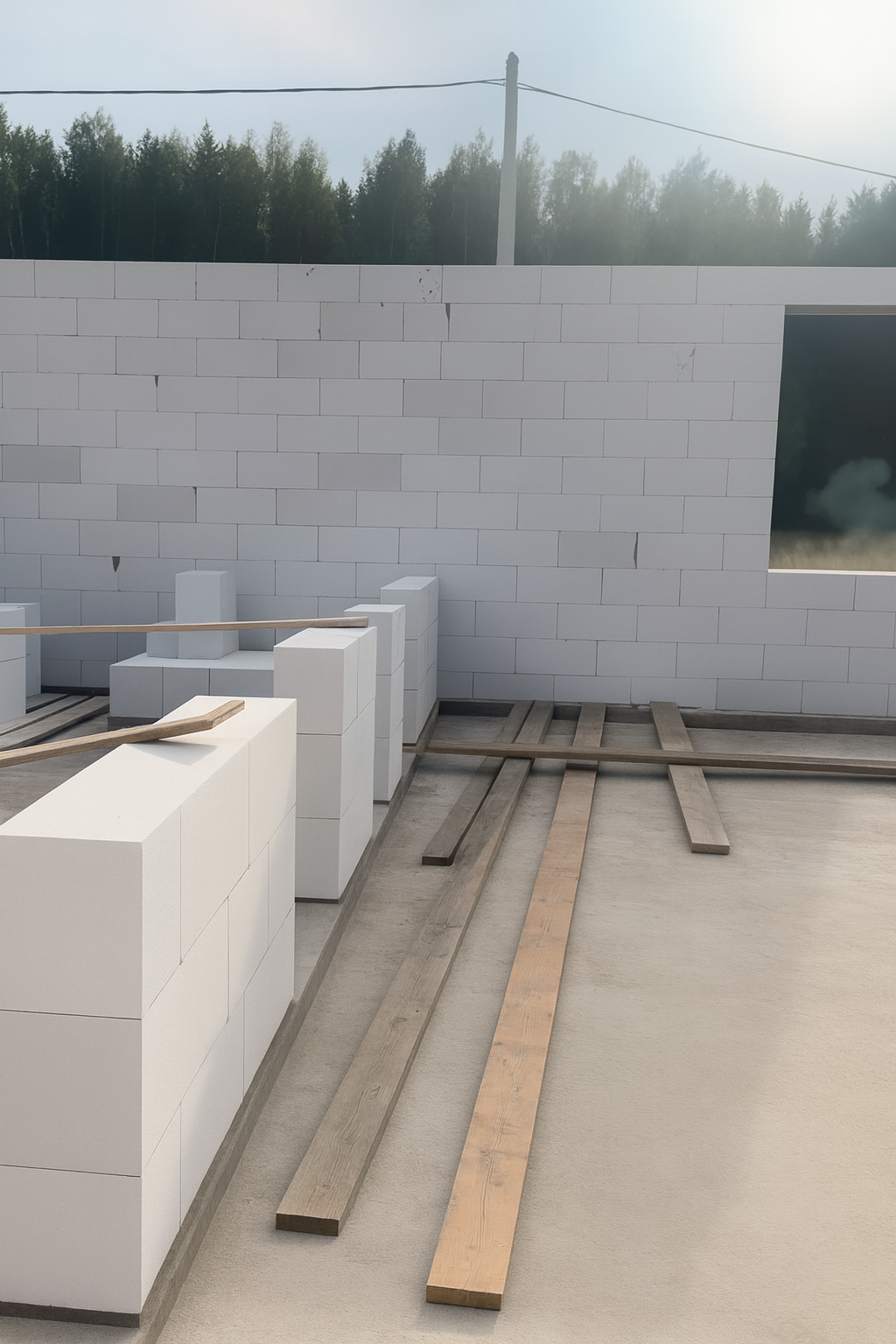 Для монтажа используется клей-пена, она ускоряет кладку стен и позволяет избежать появления «мостиков холода», снижающих энергоэффективность здания.